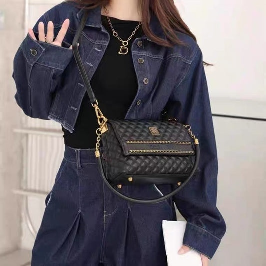 Shoulder Bag - Smalle - Black Leather - Stiched Pattern