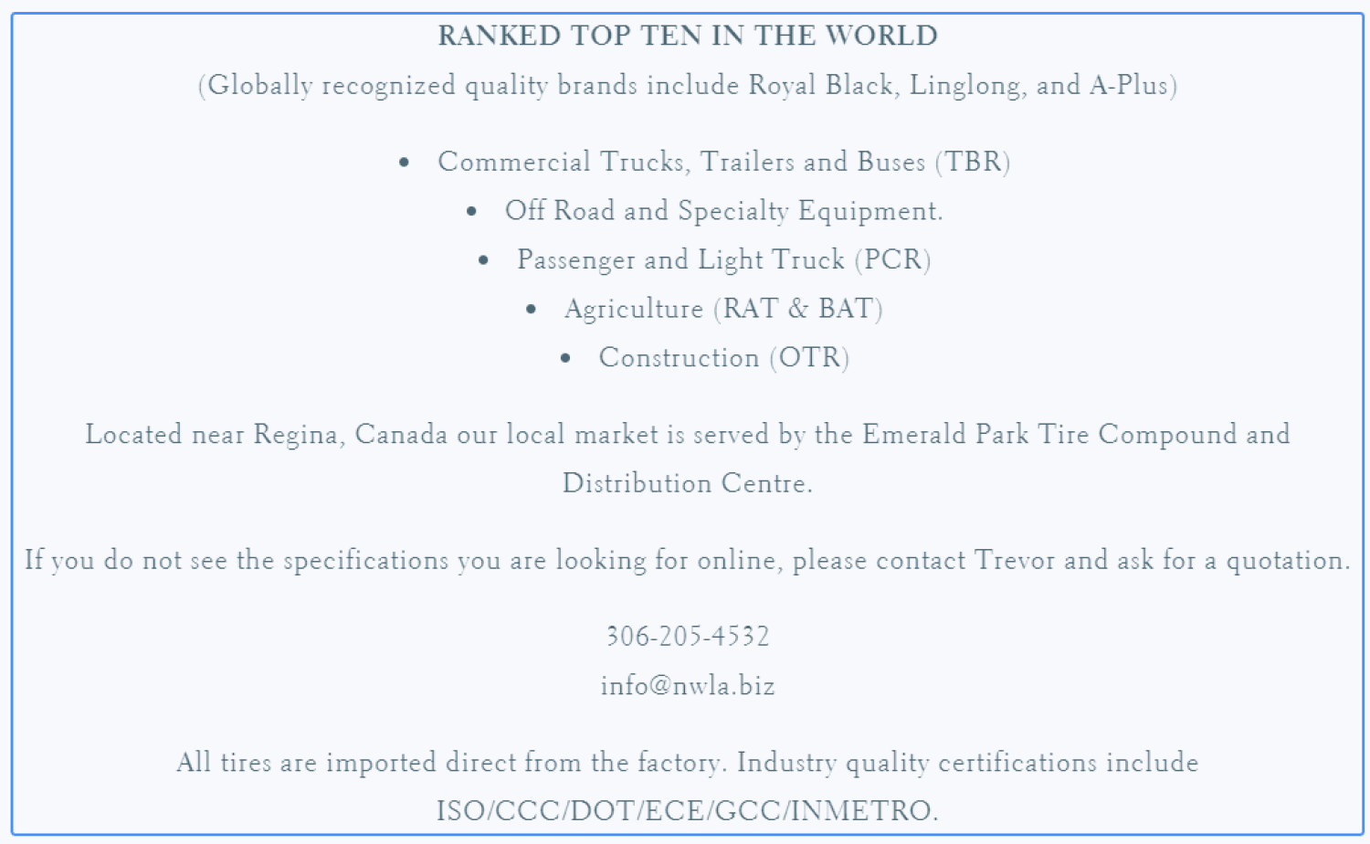 Approved Quality Standards: ISO/CCC/DOT/ECE/GCC/INMETRO